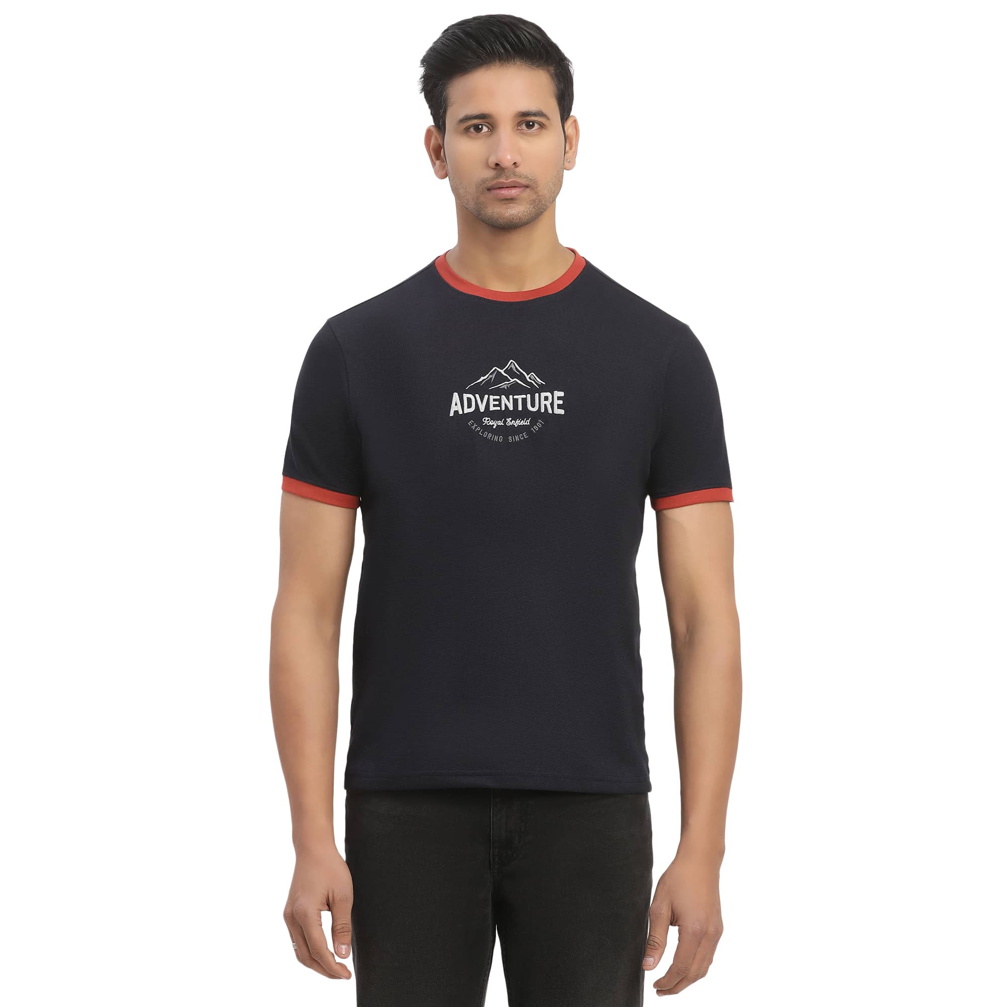 Copy of Contrast Rib Textured T-Shirt_navy_1
