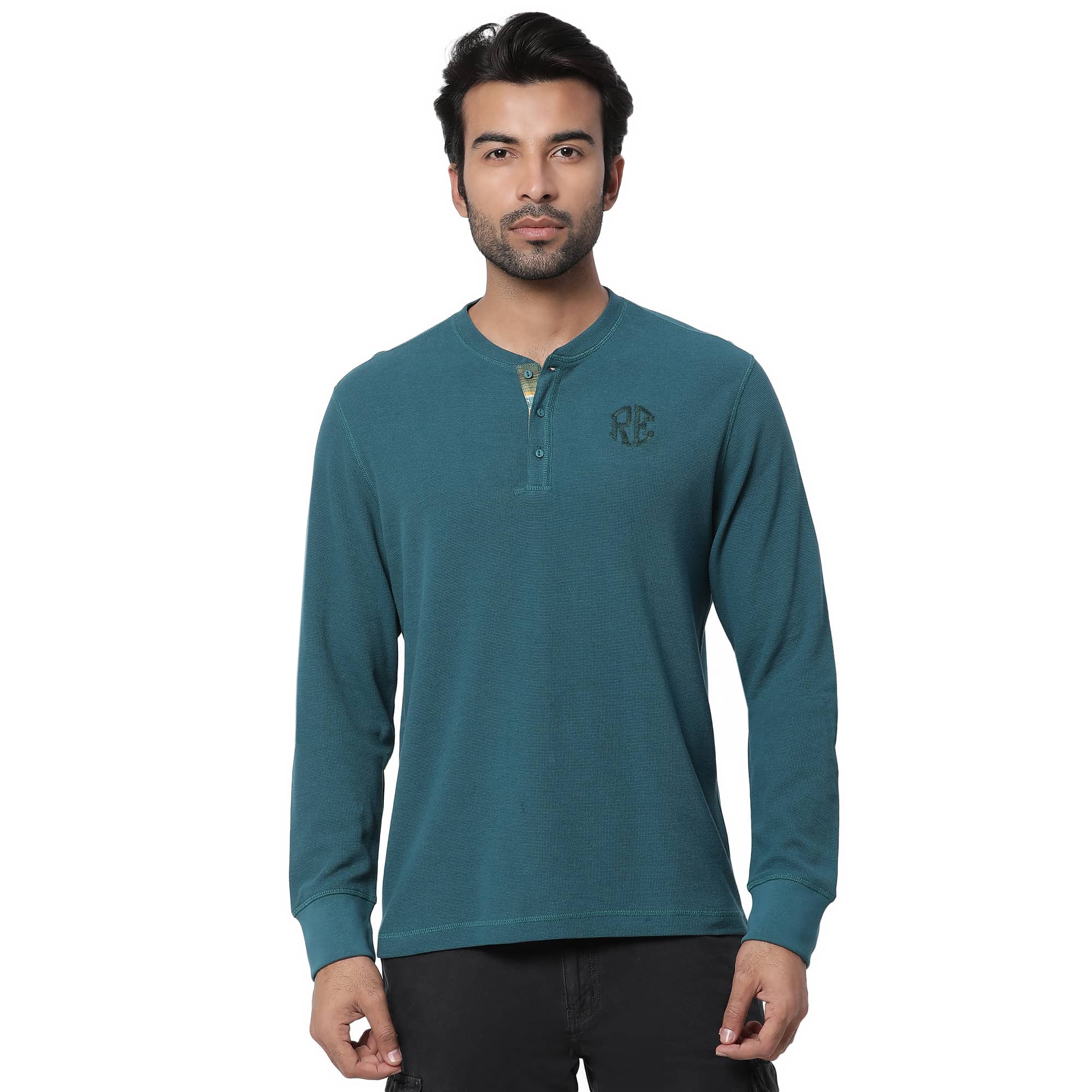 Copy of Contrast Rib Textured T-Shirt_emerald green_1