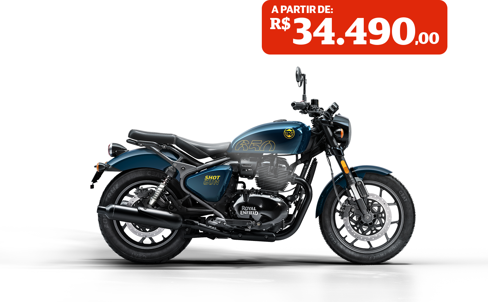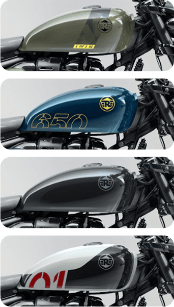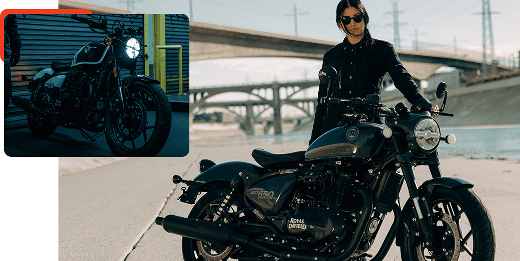 A Royal Enfield Shotgun 650 é uma motocicleta versátil e inovadora, com um design modular que permite a configuração entre assento único, duplo ou tourer com bagageiro. Inspirada na cultura da personalização, suas quatro cores exclusivas incentivam a autoexpressão.
